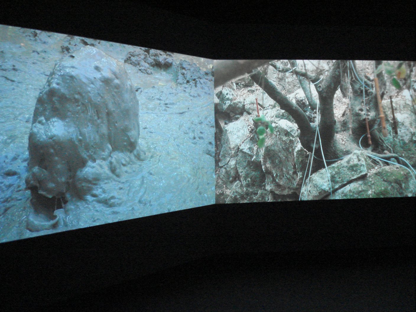 The show, curated by Regine Basha and featuring works from 26 M.F.A. students, surprised me most in the students’ heavy focus on mixed-media installations and huge video works, such as these: