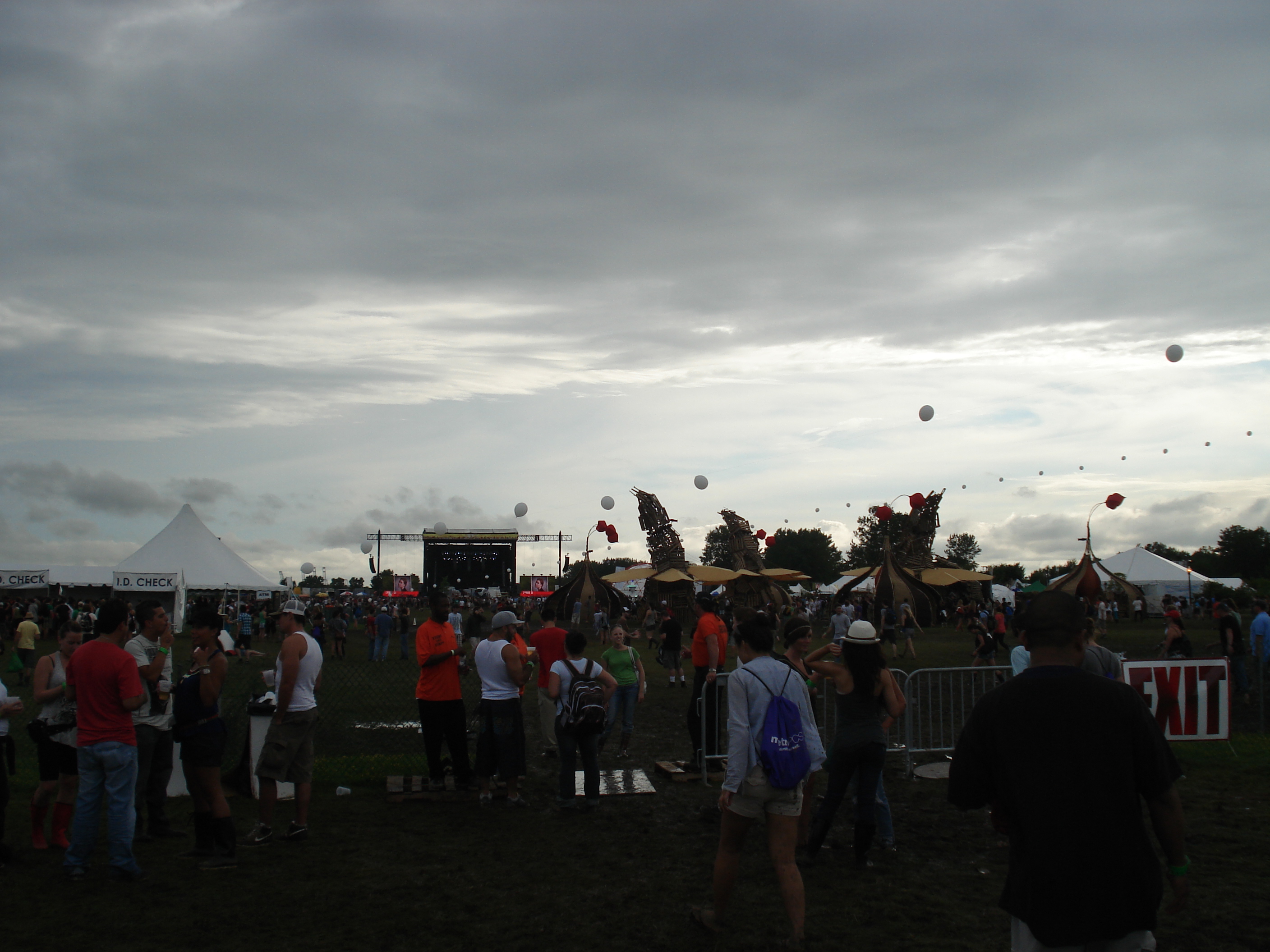 So we WERE able to make it to All Points West on Sunday and it was a sweaty, music-filled, muddy time. But first we had to wait all morning/afternoon for the torrential downpours to end and let the powers-that-be decide that the weather would hold out long enough to open the doors. There were many conflicting twitter reports and the All Points website was very infrequently updated but finally we decided to brave the crowds and the mud. On the way in we heard the Silversun Pickups and We Are Scientists but the first band that we got to see up close was Elbow. They rocked it on the mellow tip (they sound amazingly clean and sharp live) and geared us up for a walk to the Bullet Stage for a rollicking Black Keys show.